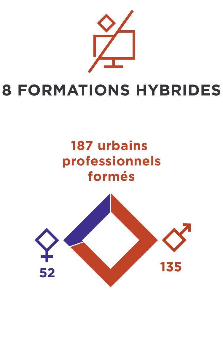En plus de dispenser des connaissances en urbanisme durable à grande échelle, le projet s’est attaché à les ancrer de manière effective dans les pratiques des professionnels et des décideurs. Une série de formations hybrides ont été ainsi été organisées dans huit grandes villes à travers le continent par les équipes des institutions partenaires, sur des thématiques répondant aux besoins locaux.